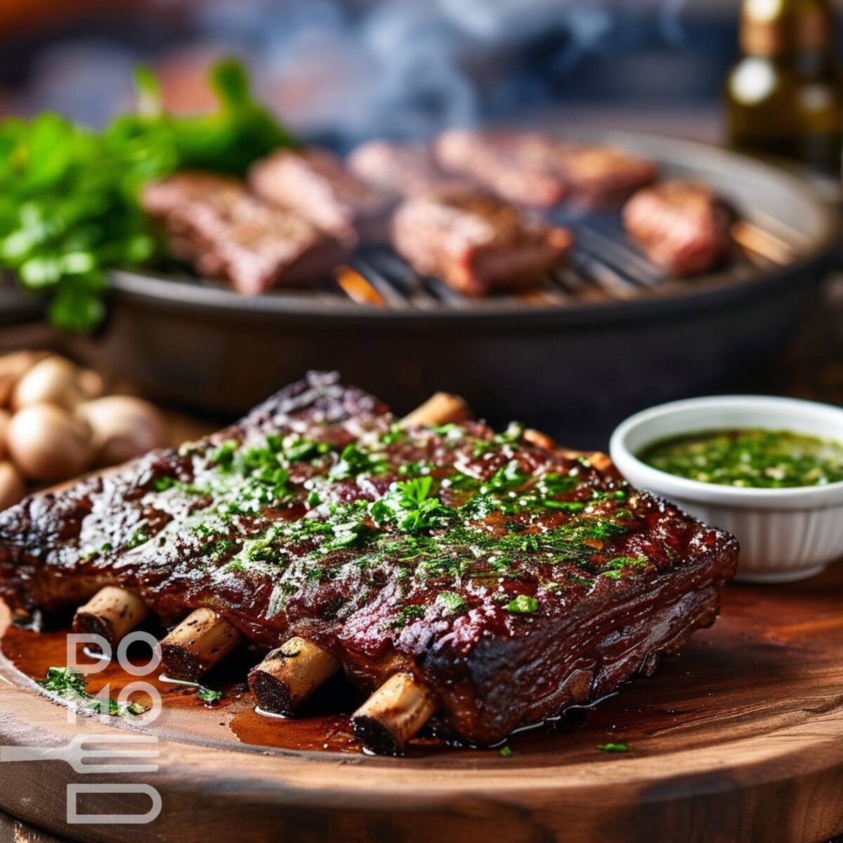 🥩 ГОВЯЖЬИ РЕБРА С СОУСОМ ЧИМИЧУРРИ Аргентинская классика с пикантным зеленым соусом – мясная симфония для настоящих гурманов! ⏳ Время: ▸ Маринад: 1 час ▸ Приготовление: 15 мин 🍽 Порции: 2-3 ⚡ Сложность: просто ❤️💛❤️💛💛💚❤️💛💛💚💚 Для ребер: • Говяжьи короткие ребра – 500 г (поперечные срезы по 2 см) • Морская соль крупная – 1 ст.л. • Перец черный горошком – 1 ч.л. • Перец белый горошком – 1 ч.л. • Перец розовый горошком – 1 ч.л. Для соуса чимичурри: • Петрушка плосколистная – 1 пучок (40-50 г) • Чеснок – 4 зубчика • Орегано сушеный – 2 ч.л. • Оливковое масло extra virgin – 100 мл • Бальзамический уксус – 2 ст.л. • Паприка крупная – 1 ч.л. • Соль – по вкусу 💚💛❤️❤️❤️💚❤️💛❤️💛💛❤️ 1. Подготовка ребер (за 1 час до готовки) ▸ В ступке растолките все три вида перца с солью (не в порошок, а до средней крупности). ▸ Щедро обваляйте ребра в смеси, слегка вдавливая специи в мясо. ▸ Оставьте при комнатной температуре на 40 минут, затем уберите в холодильник на 20 минут (так мясо лу