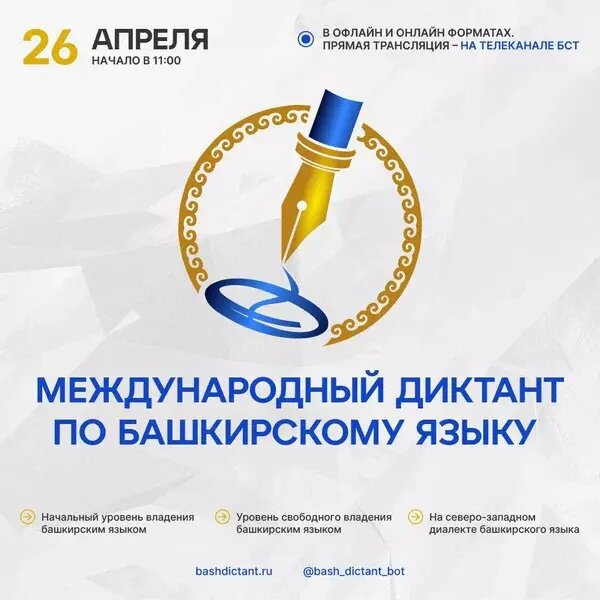 Международный диктант по башкирскому языку (0+) в этом году пройдет 26 апреля.