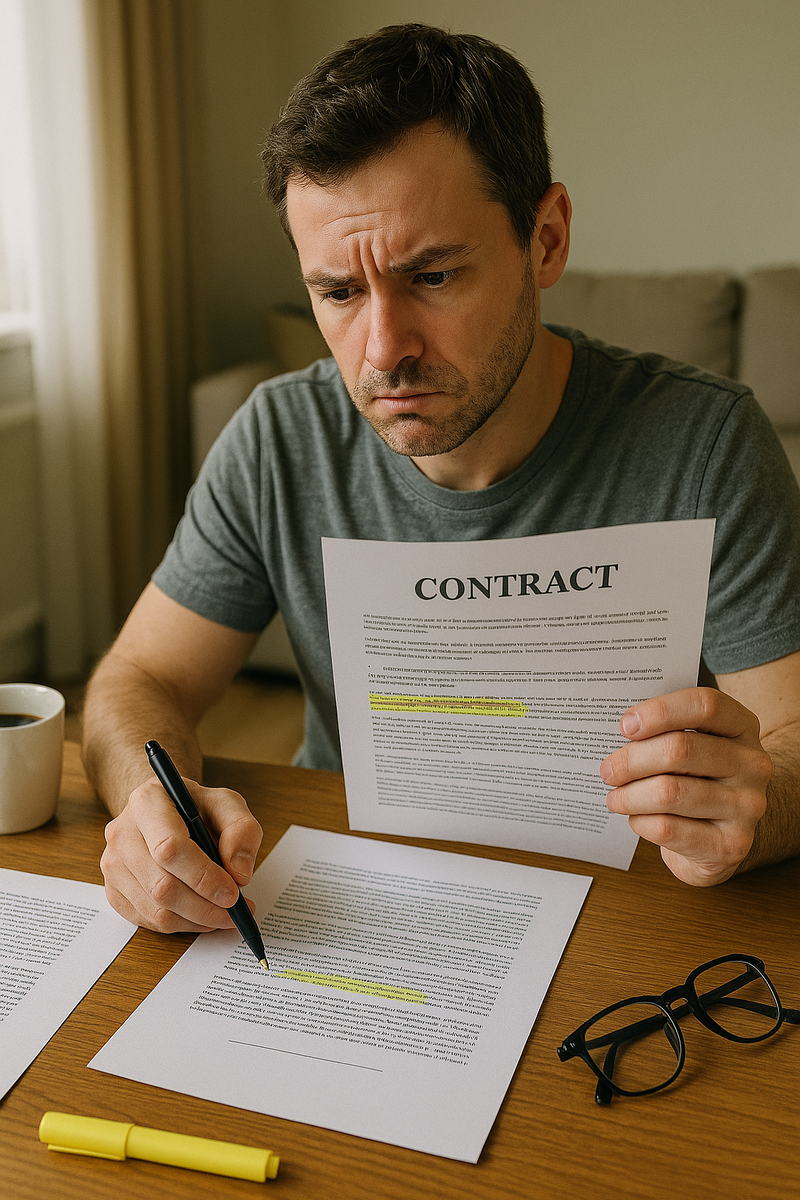 Вы когда-нибудь подписывали договор, даже не дочитав его до конца? Большинство людей кивают, листая документ, и ставят подпись там, где показал менеджер. А потом оказывается, что в пункте 14.3 мелким шрифтом прописано что-то неприятное — например, что вы автоматически соглашаетесь на дополнительные услуги или не можете расторгнуть договор без штрафа. Юридический язык специально делают сложным, чтобы обычный человек терялся в терминах и подписывал не глядя. Но есть несколько простых правил, которые помогут вам читать договоры как профессионал — без юридического образования. «Это обычная формальность», «Все так подписывают», «Тут ничего страшного» — если вам говорят что-то подобное, будьте настороже. Чем чаще человек пытается убедить вас, что договор «шаблонный», тем внимательнее нужно его изучить. На что смотреть: Не стесняйтесь переспрашивать, но делайте это так, чтобы вас не «заболтали» общими фразами. Как задавать вопросы: