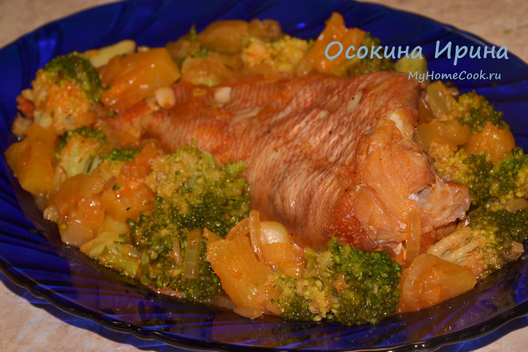 Захотелось рыбки, да не просто рыбки, а с кантонскими нотками) Получилось вот что: в сотейнике обжарила 2 луковицы четверть-кольцами и 2 зубчика чеснока, добавила 1/2 стакана сиропа от консервированных ананасов, как закипело, добавила 1 ст.л. томатной пасты, промешала, добавила соль и перец до вкусу, 3 кружочка лимона, влила 2/3 стакана воды и проварила соус пару минут. Тушку морского окуня без головы почистила, обрезала плавники и хвост, уложила в другой сотейник, залила кипящим соусом, накрыла крышкой и готовила около 15 минут, один раз перевернув рыбку. Затем переложила рыбу на тарелку, укутала фольгой. Из сотейника удалила лимоны, а в оставшийся в соус добавила 3 резаных кольца консервированного ананаса и 150 г мелких соцветий полуразмороженной брокколи, протушила всё 3 - 4 минуты, обложила этим рыбу в тарелке и подала. Бесподобно, безумно вкусное блюдо) Приятного аппетита