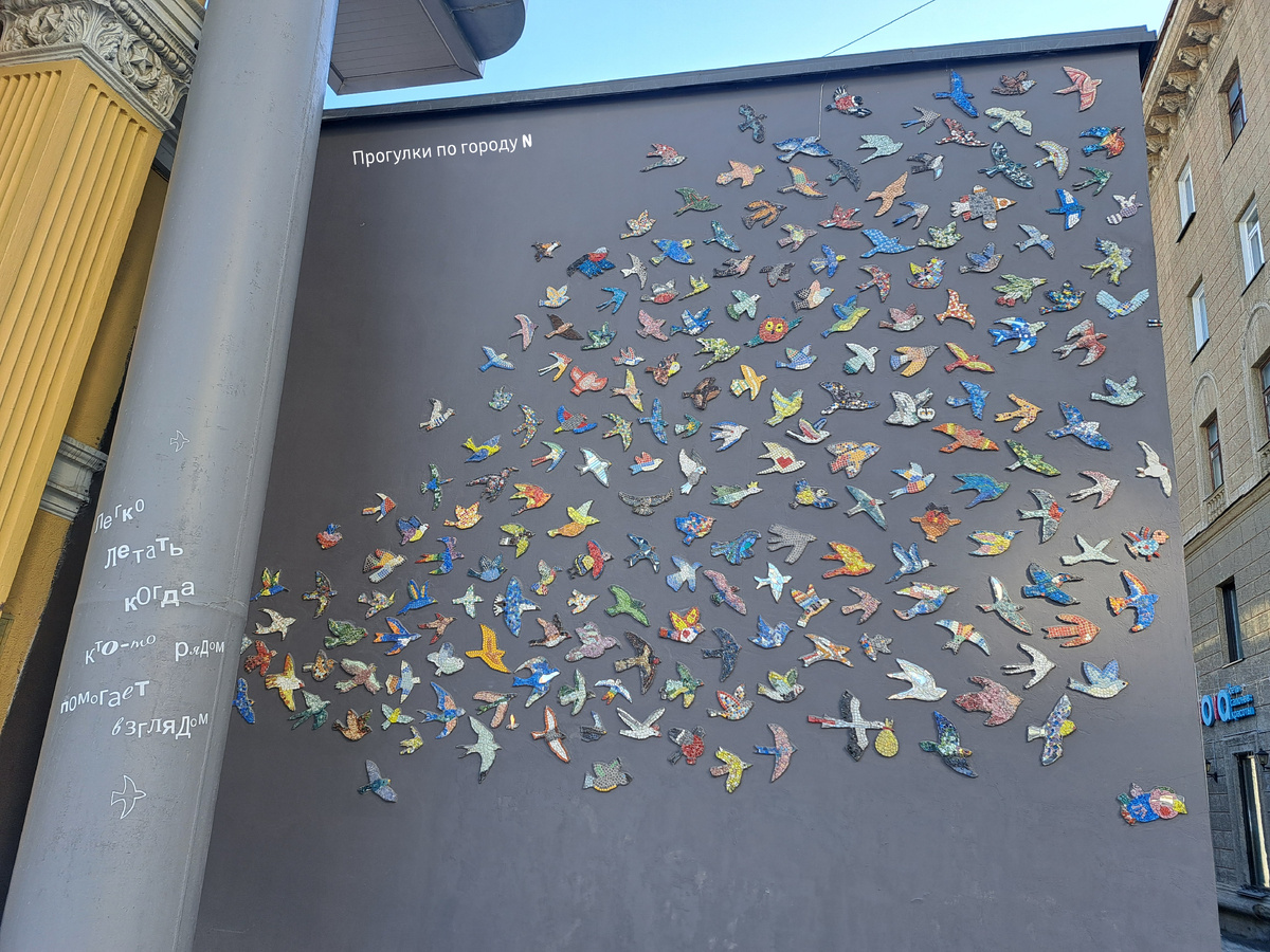Ни для кого не секрет, что на стене кинотеатра «Победа» в Новосибирске есть интересная инсталляция, которая продолжает расширяться. Если в прошлом году мозаичных птиц здесь было около 300, то сегодня их уже почти 500. Проект «Легко летать» объединил мастеров студий ArtMosaic, ARM и десятки горожан, превратив обычную стену в арт-объект с историей. Инициатором выступила Галина Машнёва (ArtMosaic), известная в Новосибирске своими мозаиками на фасадах. Раньше она украшала старые заборы и неприметные стены, а теперь вместе с новосибирцами реализовала масштабную задумку. Её цель — показать, как совместное творчество может преображать городское пространство. На мастер-классах участники выкладывали фигурки из смальты — разноцветного стекла. Каждый выбирал образ: от привычных ласточек и сов до экзотических попугаев и даже крылатого кота. Готовые работы фиксировали на стене кинотеатра, формируя единую композицию. Важно, что все птицы уникальны: двух одинаковых вы не встретите. Это не просто