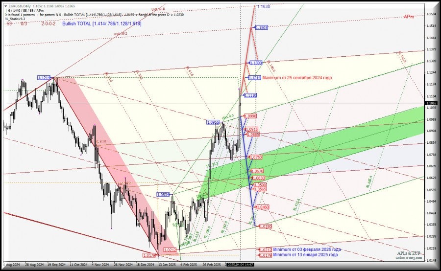 https://basechop.ru/wordpress/?p=37138 Операционный масштаб Minor (таймфрейм Daily) EUR/USD – Daily – обзор вариантов движения – c 07 апреля 2025 г. Предыдущий обзор EUR/USD (таймфрейм h4) от 02.04.2024 г. 15:07 ____________________ Euro vs US Dollar Движение единой европейской валюты – EUR/USD-Daily – с 07 апреля 2025 года продолжится в соответствии с отработкой и направлением пробоя диапазона: – уровень сопротивления 1.1110 на контрольной линии UTL вил младшего операционного масштаба Minute-h4; – уровень поддержки 1.0990 на начальной линии SSL вил младшего операционного масштаба Minute-h4. Восходящее движение. При пробое контрольной линии UTL (1.1110) вил младшего операционного масштаба Minute-h4 станет возможным достижение единой европейской валютой maximum 1.1214 от 25 сентября 2024 года, а если данный уровень будет пробит – тогда восходящее движение EUR/USD может быть продолжено к конечной линии FSL (1.1300) вил старшего операционного масштаба Minor-Daily и к…
