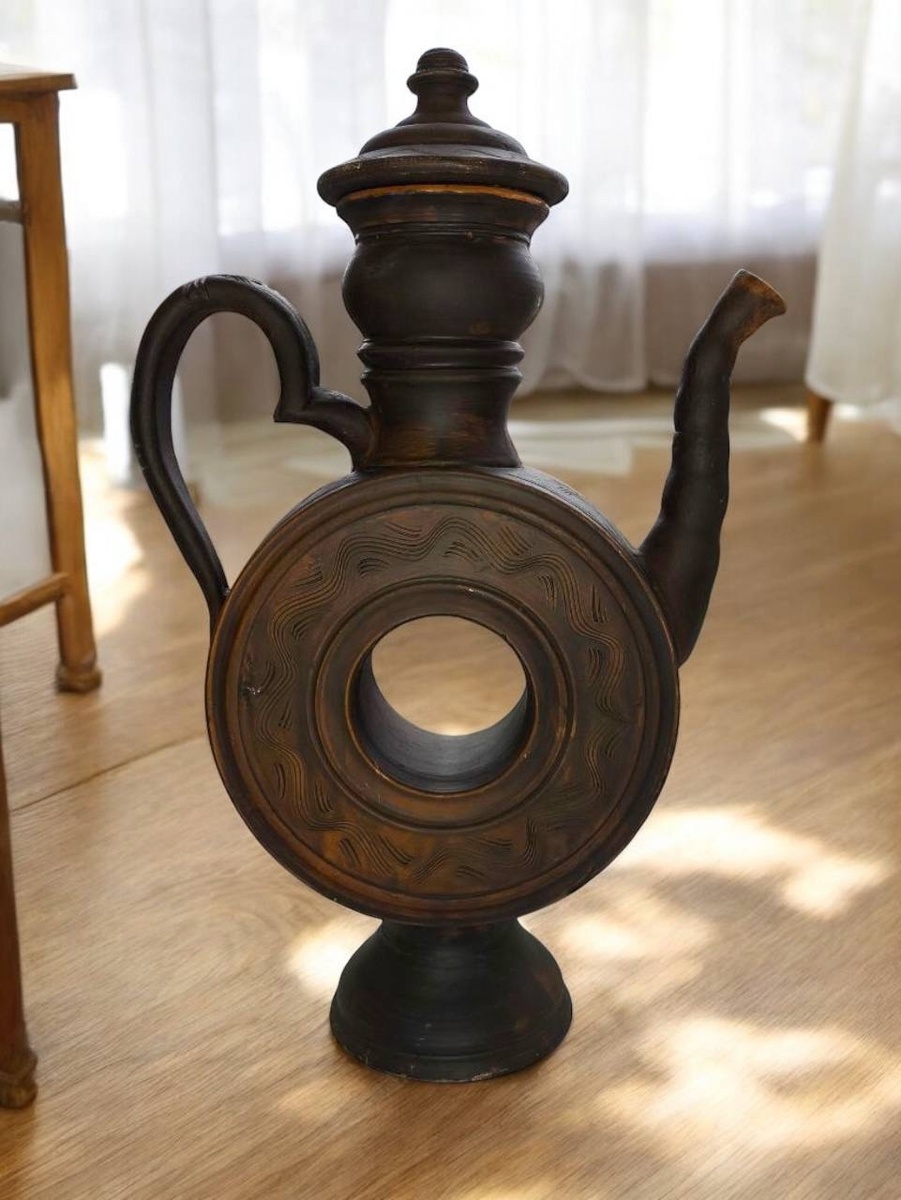 Приветствуем 🤗 Хотим рассказать про сосуд из предыдущего поста. Квасник — посуда, похожая на бублик с носиком, широким горлом и дугообразной ручкой, из которой разливали ржаной или фруктовый квас. В отличие от сосудов для воды, у квасника более тонкий носик и горлышко, чтобы фильтровать естественный осадок. На Руси квас появился более тысячи лет назад, первое упоминание о нем датируется 996 годом. В древности квас считался священным напитком и использовался в ритуалах. Квасники современной формы известны с конца XVII века. В те времена посуда украшалась росписью и изображениями людей, птиц и животных. Нередко квасники украшали рисунками с жанровыми сценами на тему любви и военных баталий. В начале XIX века квас хранили в погребах. Благодаря плоским стенкам квасников их удобно было размещать на полках. Для быстрого охлаждения напитка внутрь круга клали лед. Зауженное горлышко позволяло процеживать солод и не вспенивать напиток. Изначально квасники брали с собой на полевые рабо