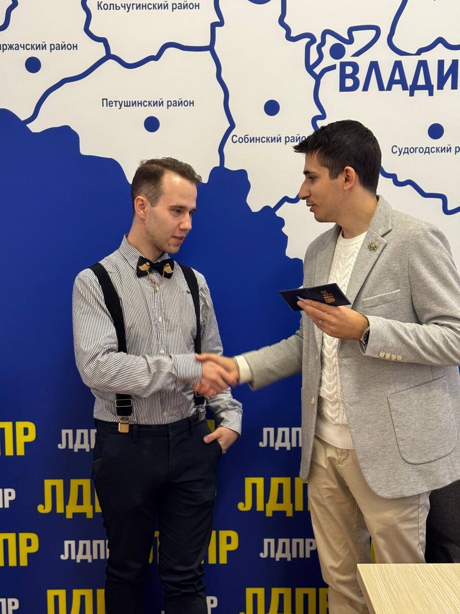 🗣️«Очень приятно, что партия постоянно пополняется новыми сторонниками. Приходят сознательные люди, которые верят в идеи ЛДПР, разделяют их, которые восхищаются Владимиром Вольфовичем Жириновским и его преемником Леонидом Эдуардовичем Слуцким. Наши единомышленники готовы вести активную работу, готовы посвятить себя политической, общественной деятельности», — говорит зам.координатора Владимирского отделения ЛДПР Герман Сазонов.