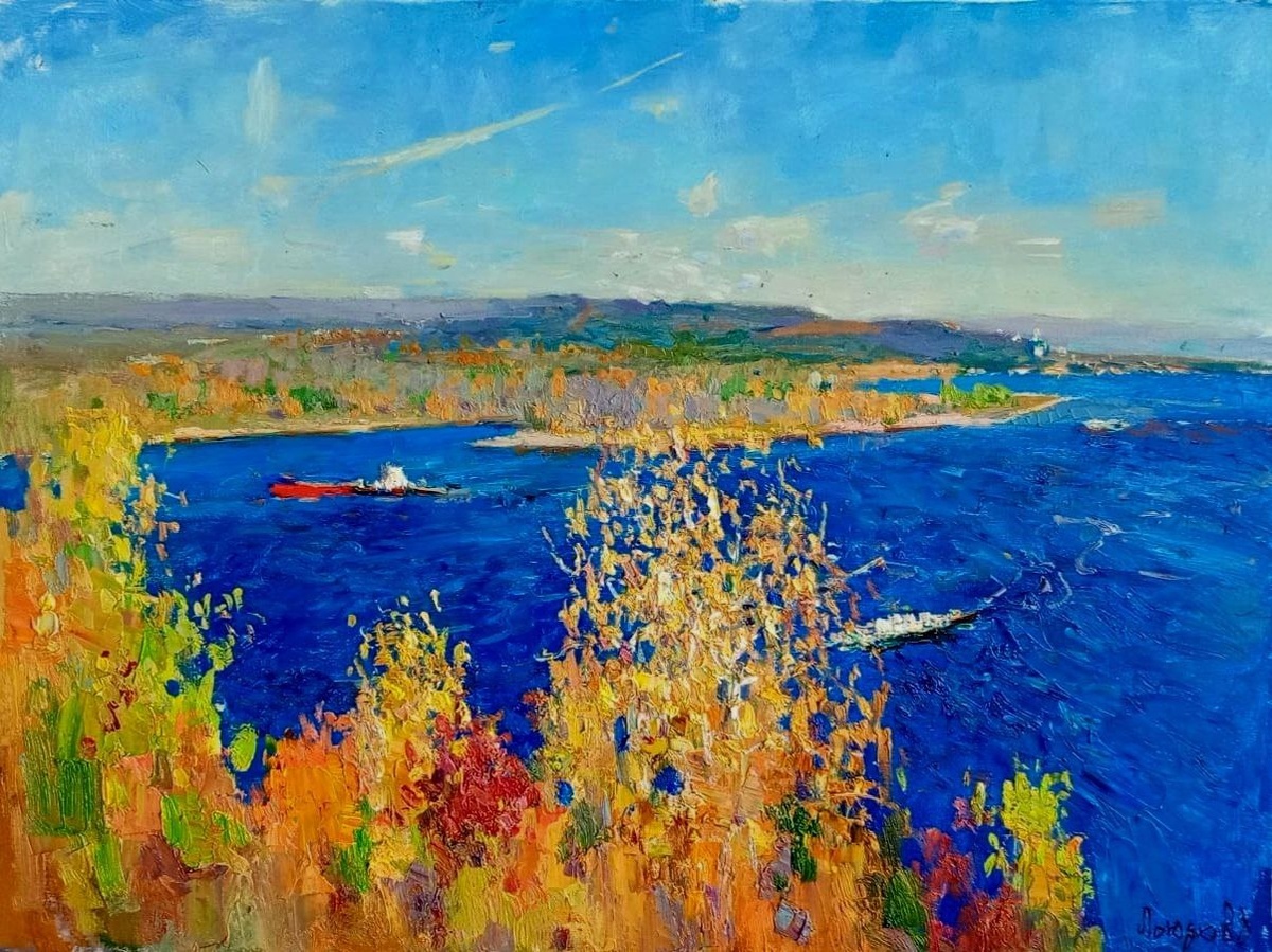 Д.П. Лысяков "Золотой день в Ширяево", холст, масло, 2024, 60х80 👁Здесь мы видим тот самый легендарный берег Волги близ деревни Ширяево, где Репин писал знаменитую картину "Бурлаки на Волге" 🔥Мастерство Дмитрия Лысякова являет нам настоящий пронзительный погожий осенний день, когда оранжево-желто-красное великолепие еще усиливается на фоне необыкновенной синевы реки и потрясающей дали русской равнины 💥Интенсивное, но гармоничное звучание цветов, уверенный мазок, яркая передача света придают особое очарование картинам Дмитрия Лысякова, и эта работа, конечно, не исключение Друзья, понравилась вам эта картина? Подпишись на MArt ✍️ узнаешь эксклюзив первым #живопись@martproject #картина_дня@martproject #художники_прибайкалья@martproject