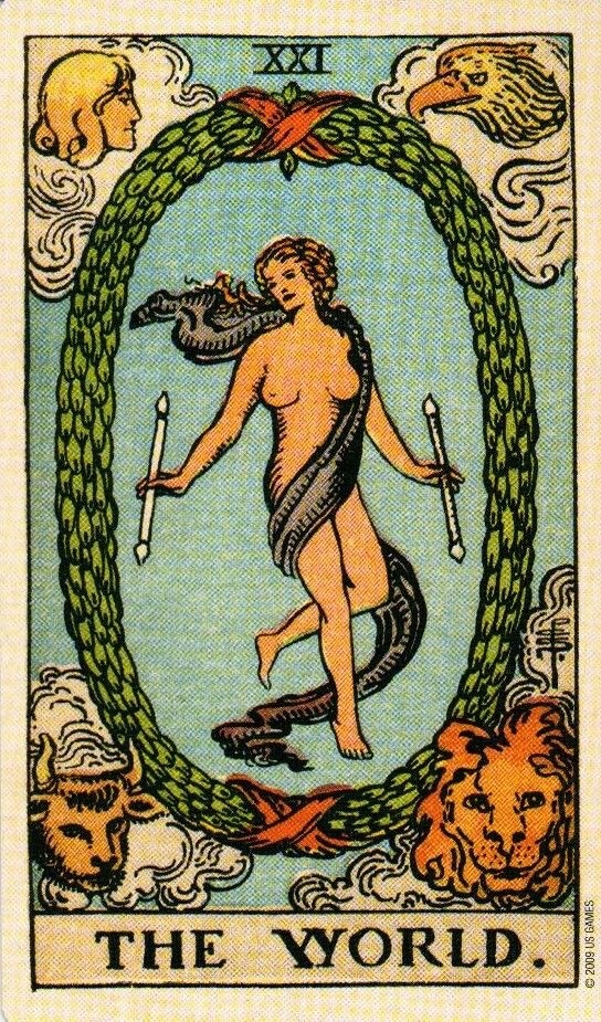 Старший Аркан Таро "Мир" (The World) – это одна из самых долгожданных и радостных карт колоды. Она символизирует завершение, интеграцию, исполнение желаний, гармонию и целостность. Мир – это карта, которая говорит о том, что вы достигли определенного этапа в своей жизни и готовы к новым начинаниям, но уже с багажом опыта и мудрости. На классических изображениях карты Мир обычно изображена обнаженная или полуобнаженная женщина, танцующая в венке из лавра. В каждой руке она держит по жезлу. Вокруг нее изображены четыре фигуры, символизирующие четыре стихии, четыре стороны света или четыре Евангелиста: ангел (воздух), орел (вода), лев (огонь) и бык (земля). Эти фигуры представляют собой интеграцию всех аспектов личности и мира. Мир говорит о том, что вы успешно завершили важный этап в своей жизни и достигли поставленных целей. Это время для того, чтобы насладиться плодами своего труда и почувствовать удовлетворение от достигнутого. Карта также может указывать на путешествие, расширен