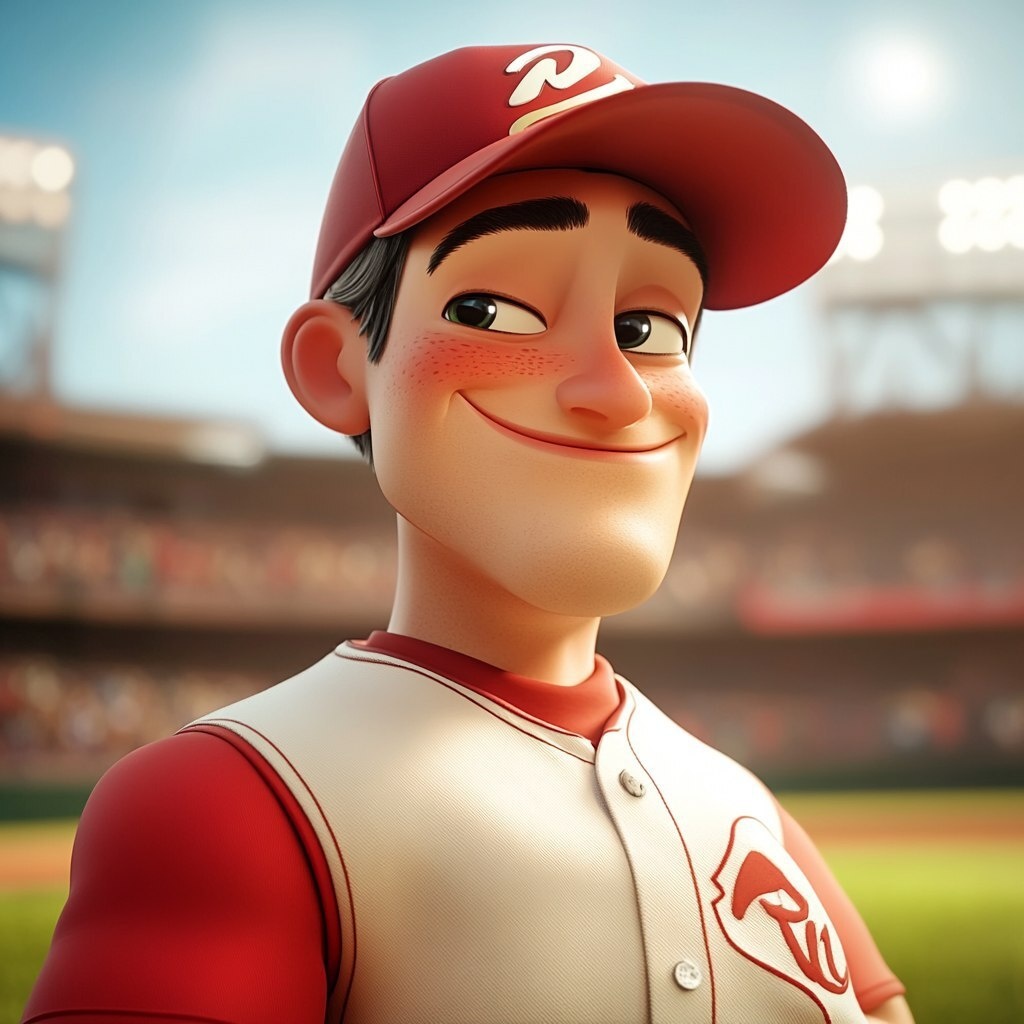 Создано на основе запроса: baseball player winking, pixar style