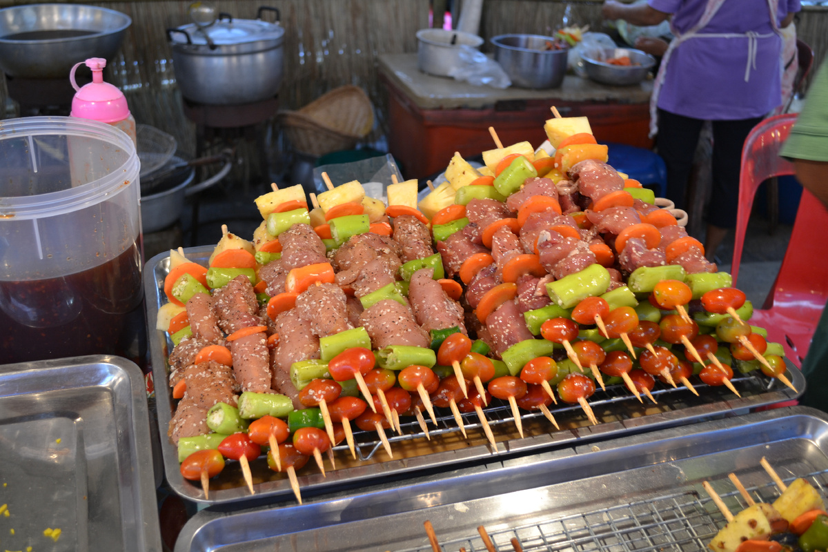 Вечер-самое время,когда на Патонге всё оживает!Туристы выходят на прогулки,включается подсветка,везде готовят еду!А самым тусовочным местом становится улица Бангла Роуд,которая днём проезжая,а после 18 час.-пешеходная! Мы,приехав с пляжа Paradise ,пошли вдоль ларьков с едой и купили шашлычки,пиво и креветки.И мне так захотелось клубники, но она оказалась безвкусная,только на вид красивая.Красный перчик в этих шашлыках такой острый,я один съела и не могла дышать минут 10.Да ещё и слёзы лились градом-очень ядрёный! Потом подумали,почему бы не организовать сеанс массажа.Вот всё-таки хорошо в Тайланде,на каждом шагу и еда и массажи!Сергей пошёл массировать свою больную спину,а я ноги.Сначала рыбки с названием Гарра Руфа делали мне пилинг.Было очень щекотно и смешно,да ещё проходящие туристы меня фоткали и смеялись!А потом я тоже сделала массаж ног,после чего такая появилась лёгкость,очень классно, мне понравилось! Теперь с лёгкими ногами можно и гулять!Мне.Сергей же после массажа чу