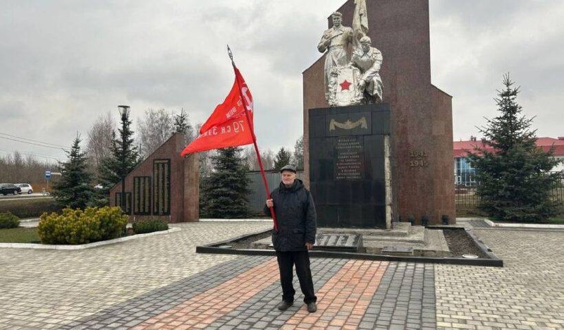 Мужчина простоит 80 дней с красным флагом и закончит вахту в День Победы 9 Мая.