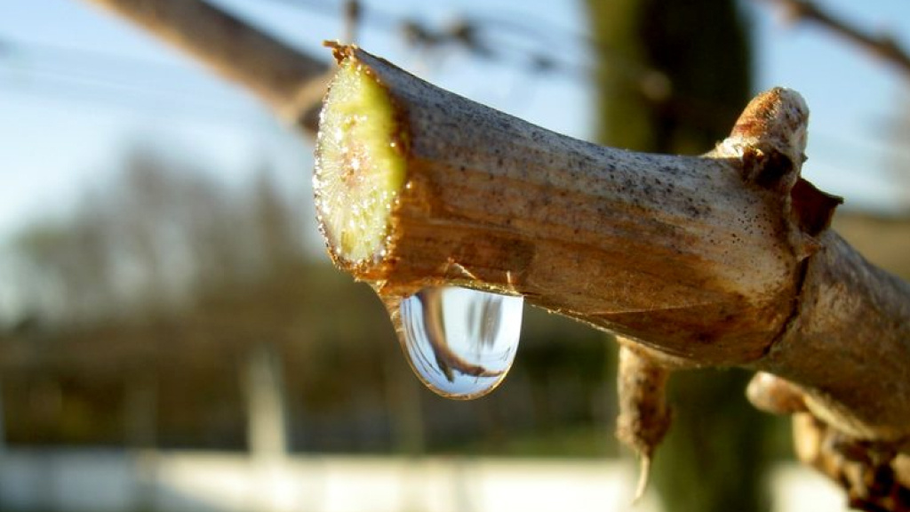Зима наконец-то отступает. Вместе с наступлением весны просыпается природа. Растения запускают новый жизненный цикл. Для виноделов начинается долгожданный вегетационный период — время от начала сокодвижения до листопада, в течение которого виноград активно растёт и плодоносит. Этот период делится на несколько этапов, но начинается он с так называемого «плача куста». С первым теплом корни лозы пробуждаются и начинают активно всасывать влагу из почвы. Но поскольку почки ещё не появились, испарения не происходит. Из срезов лозы, которые были сделаны до начала сокодвижения, начинает выделяться пасока — сок, содержащий минеральные вещества, сахара и органические кислоты. Это сигнал того, что лоза готова к росту. Интенсивность такого «плача» может доходить до 1,5 литров в сутки, в зависимости от сорта. Чтобы лоза не теряла питательные вещества из-за обильного течения пасоки, особенно крупные срезы закрывают садовым варом (смесь смол, воска и растительных масел) или суриковой краской с добавл