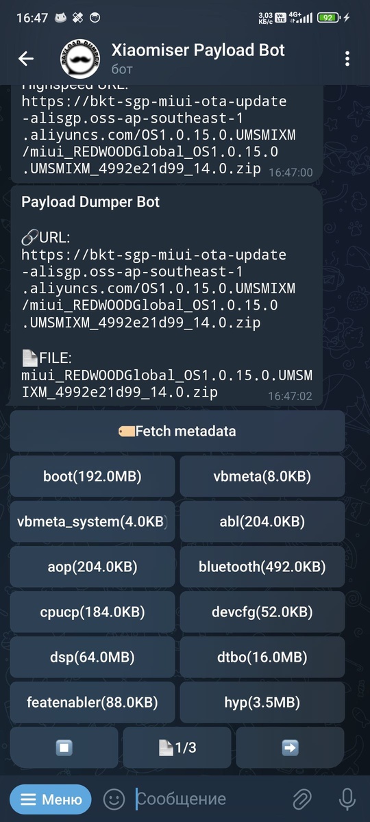 @xiaomiser_payload_bot Если кому надо вот бот, который может достать вам нужный раздел из вашей прошивки. Нужно ему просто отправить прямую ссылку на прошивку, дальше поймете
