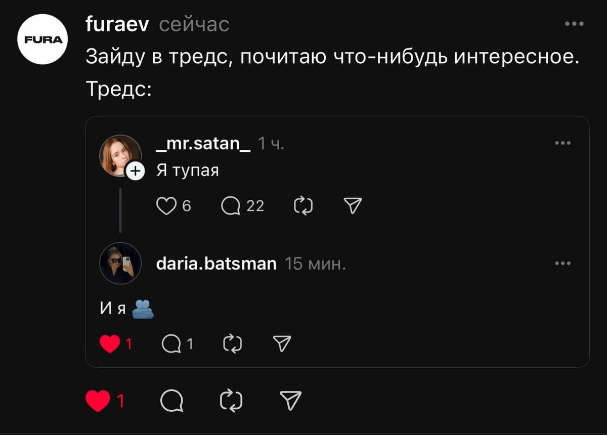 В тредс я достиг почти 900 000 просмотров, т.е. почти 1 млн. Что из себя представляет тред - на скриншоте.