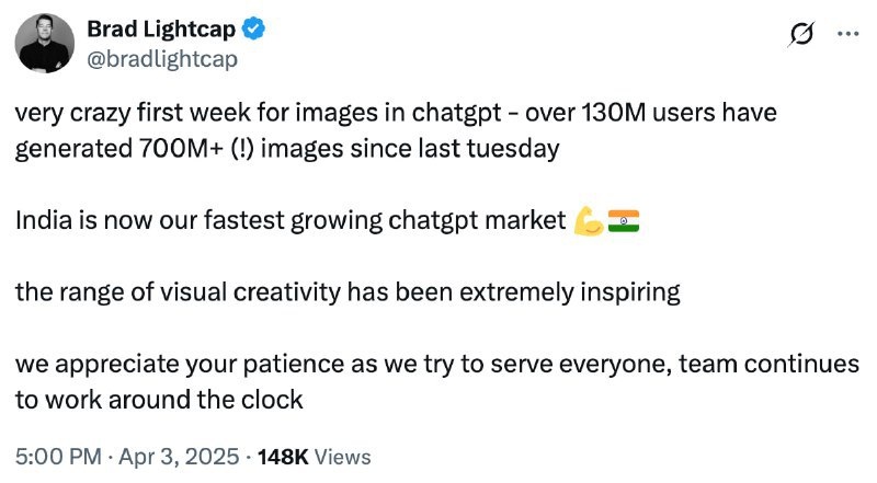 ⚡️130 млн юзеров за неделю генерили арты в ChatGPT — почти вся Россия за кисточкой