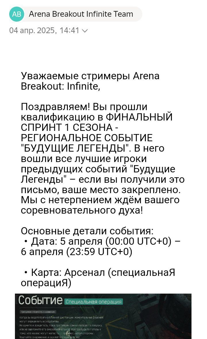 Так, ещё одно пришло письмо с приглашением на турнир в эти выходные, пока небольшая непонятка с таймингом, как станет точно известно, как разработчики ответят нам конкретно, так я вам все скажу. Турнир нужно обязательно стримить, так что буду всех рад видеть на стриме, будем жёстко бороться за призы против лучших стримеров СНГ 💥