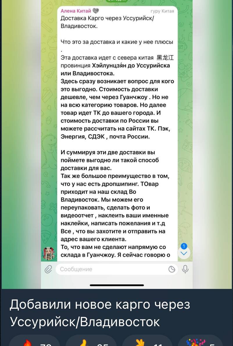 В обучение добавили проверенный контакт Карго, через Владивосток/ Уссурийск 📦 ( Китай- Владивосток- ваш город)