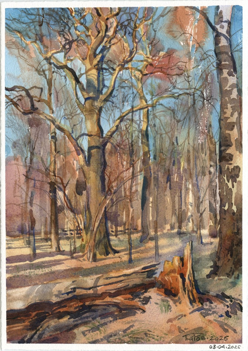 20250403 Весна, Битцевский парк / Bitza Park. Moscow / 30x21x30 / plein air watercolor. Краски Pinax Extra. Бумага "Палаццо" хлопок 300гр. #Pinax_Extra #palazzo_watercolor_paper #urbansketchers #пленэр #акварель #этюды #watercolor #АкварельнаяМосква #WatercolorMoscow #pleinair_russia