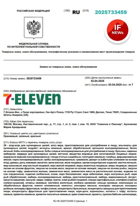 ⚡️ Пятёрочка, подвинься! В Россию может прийти сеть магазинов 7-Eleven. Компания подала заявку на регистрацию в Роспатент 7-Eleven — это сеть из 36 тысяч магазинов «у дома». Компания родом из США. Там же находится её штаб-квартира. @if_news