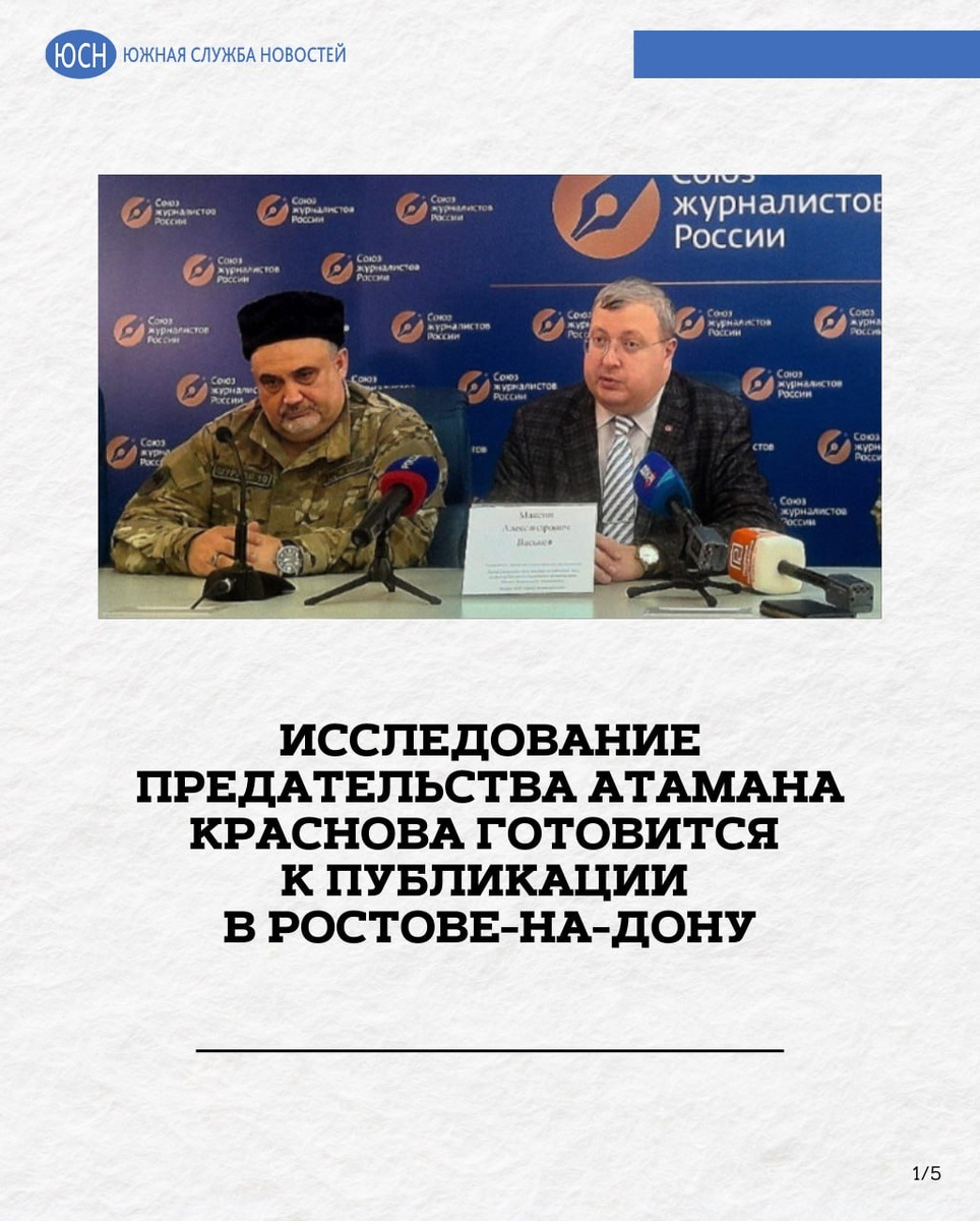 🔹 Исследование предательства атамана Краснова готовится к публикации в Ростове-на-Дону В Ростове-на-Дону представили анонс научной работы, посвященной бывшему казачьему атаману Петру Краснову. 🌐 Южная служба новостей