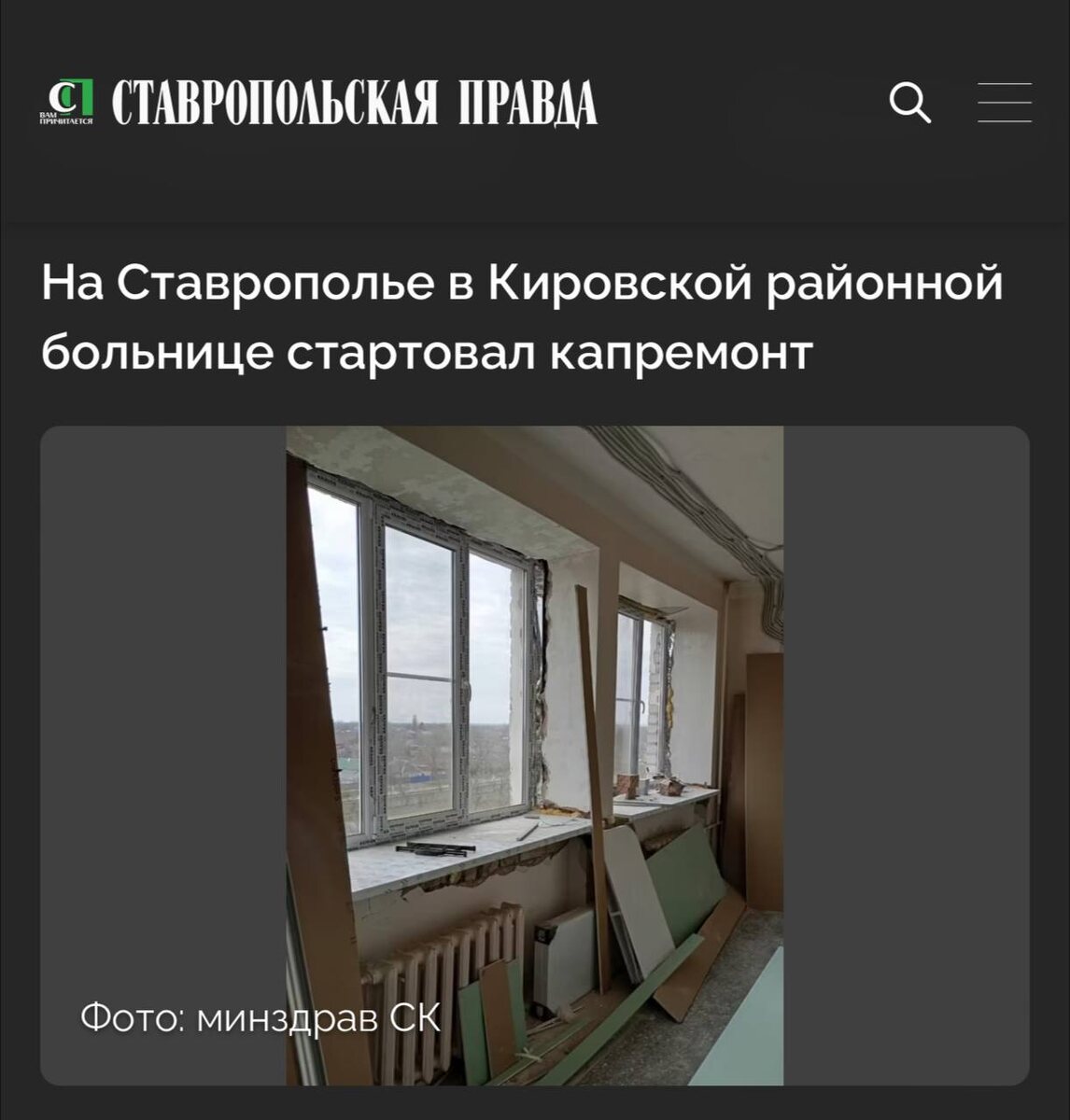#КировскийокругвобъективекраевыхСМИ На Ставрополье в Кировской районной больнице стартовал капремонт В рамках проекта модернизации первичного звена здравоохранения в Кировской районной больнице начался капремонт отделений терапии, хирургии и операционного блока. Также в планах замена лифта. Стоимость проекта — более 54 миллионов рублей. Министр здравоохранения Ставропольского края Юрий Литвинов отметил, что на реализацию регионального проекта «Модернизация первичного звена здравоохранения» в 2025 году выделено более 2 миллиардов рублей. Работы по совершенствованию здравоохранения Ставрополья продолжаются. Ранее губернатор Ставрополья Владимир Владимиров сообщал, что в крае выделено более пяти миллиардов рублей на закупку лекарств. https://stapravda.ru/20250404/na_stavropole_v_kirovskoy_rayonnoy_bolnitse_startoval_kapremont_230220.html