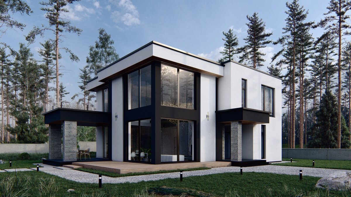 Так как уже потратили кучу времени на поиск компании, выбрали готовый проект. Ведь проектирование съело бы ещё 4-5 месяцев, а цены на строительство сейчас и без этого растут с огромной скоростью. По итогу понравился “Грумиум”. Шикарный проект, в котором пять комнат, так ещё и второй свет. Казалось жизненно важным сделать большое остекление в загородном доме, чтобы не ощущать себя как в коробке.