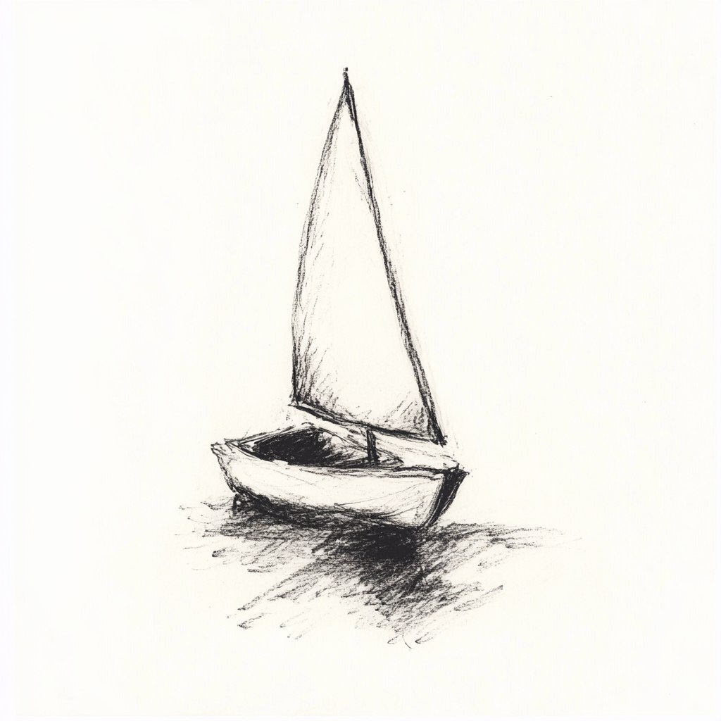 Создано на основе запроса: hand drawn sketch of a small sailing boat isolated against a white background