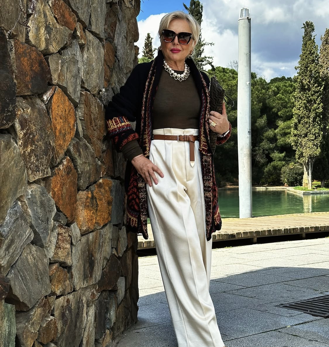 Цифры в паспорте не повод одеваться в «бабушкины обноски» и отказывать себе в стильных нарядах. Безусловно, с возрастом гардероб должен меняется, становиться более сдержанным и элегантным, а ходить с ног до головы в подростковых трендах - нелепица. Сегодня рассмотрим несколько стильных вариантов и фишек, которые украсят даму за 60 и сделают ее привлекательной в глазах окружающих 🔽 Светлые брюки - лучший способ освежить образ. Они выглядят эффектно и добавляют нежности. Многие считают их непрактичными, но при аккуратной носке и сухой погоде это не проблема. Главное правильно выбрать фасон! Палаццо на высокой талии подойдут каждой, сделают ноги длиннее, а силуэт стройнее. Также можно рассмотреть вариант с классическим прямым кроем, они также универсальны. Такие брюки можно носить и в повседневных образах, и, что называется, «на выход». Даже с простой футболкой и минимальным количеством аксессуаров комбинация получится элегантной. Жемчуг вновь вернулся в моду и стилисты активно использ