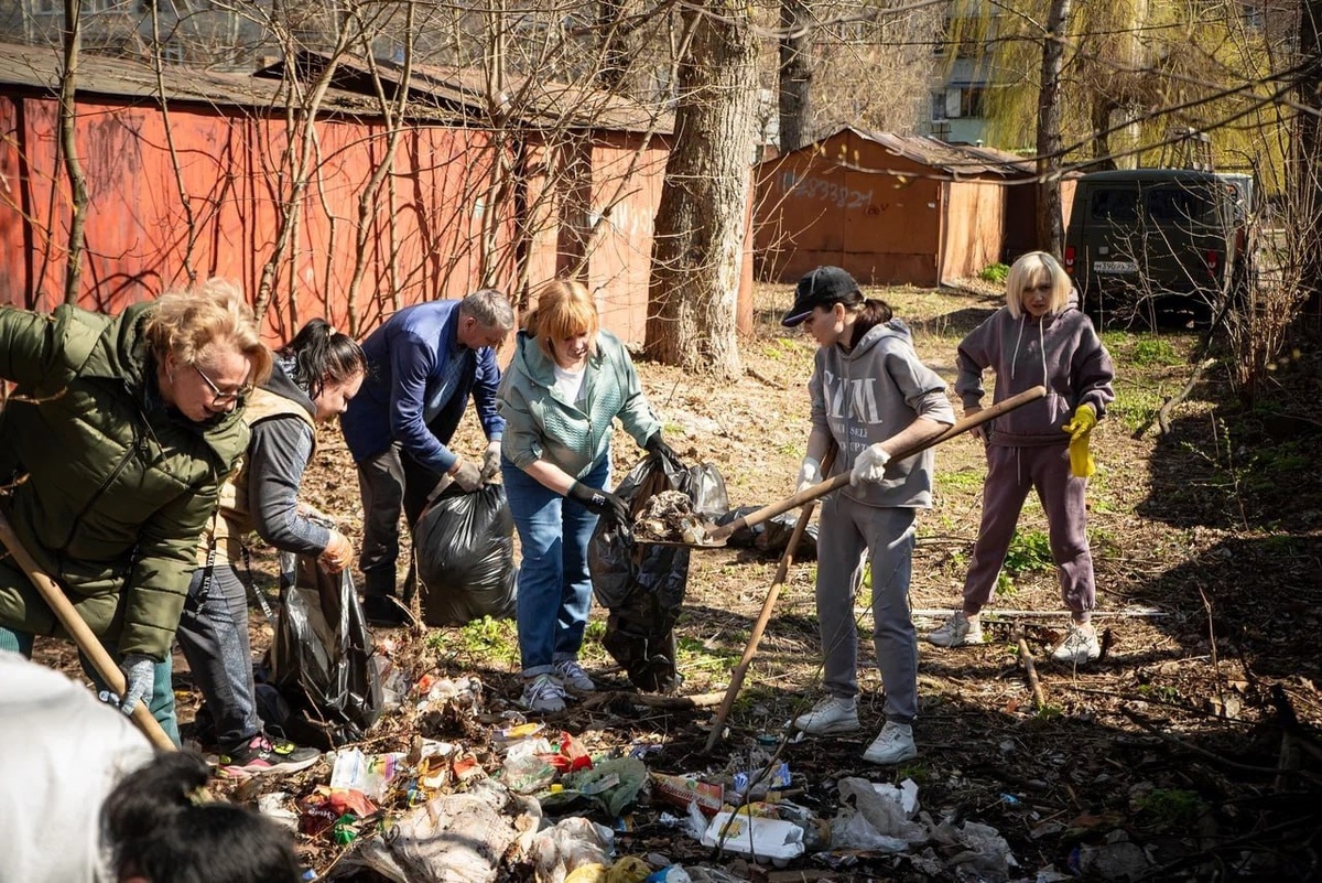 Комитет соцзащиты населения Курска убирает территорию на улице Пигорева