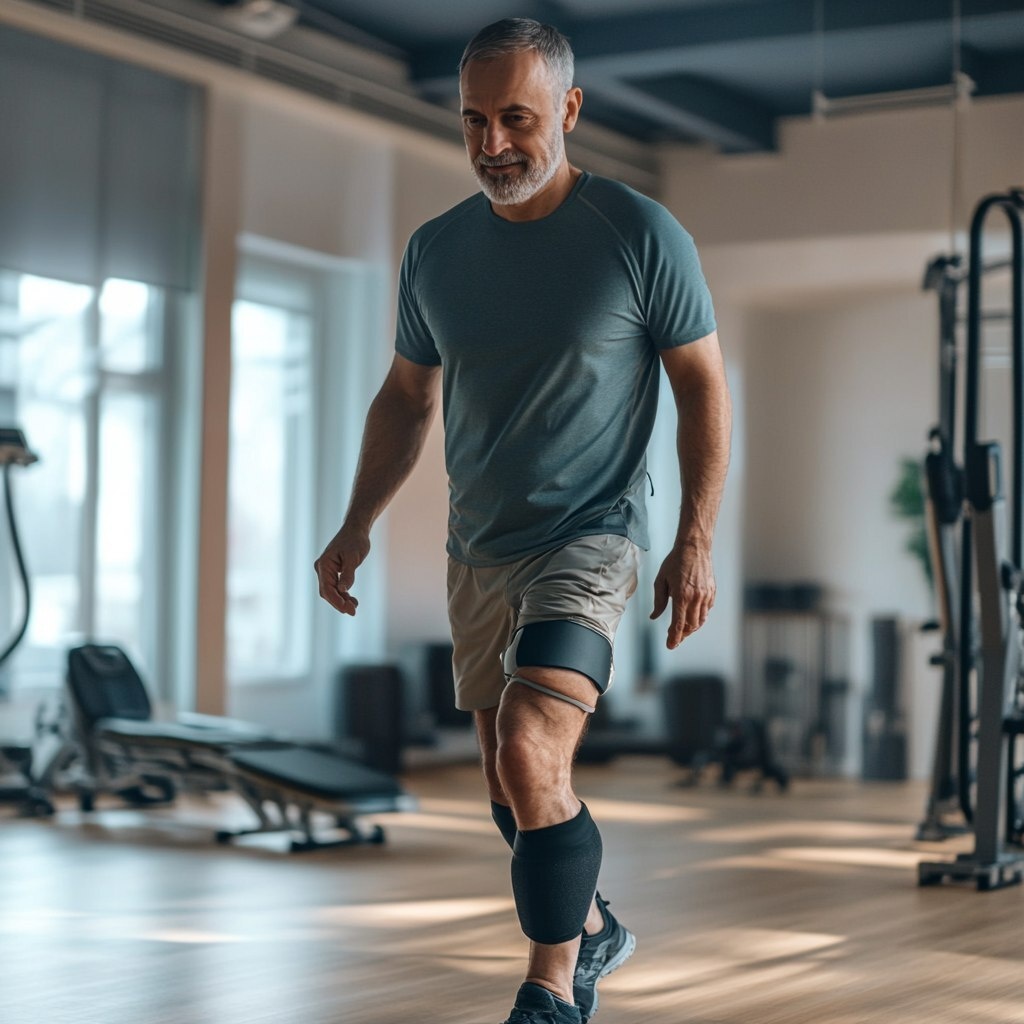 Создано на основе запроса: Fit healthy man, learning to walk again after knee replacement