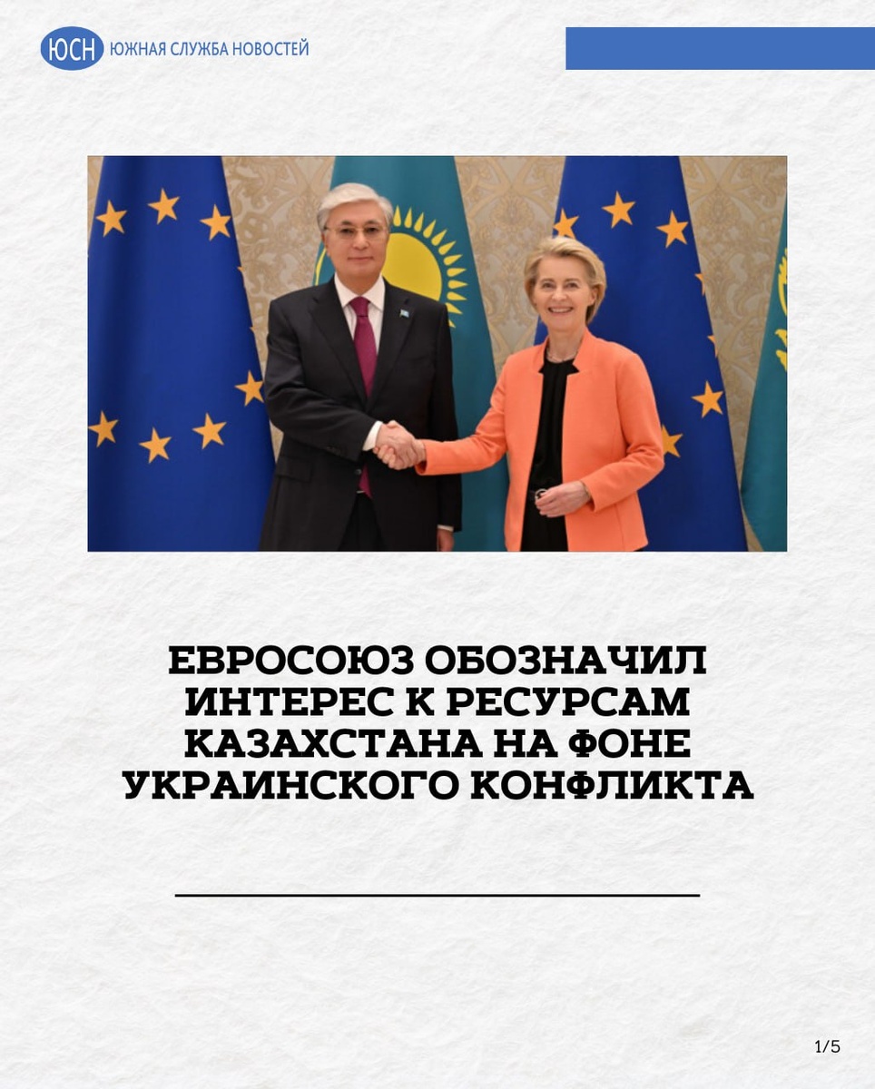 🔹 Евросоюз обозначил интерес к ресурсам Казахстана на фоне украинского конфликта В пятницу завершается последний день саммита «Евросоюз – Средняя Азия». В подобном формате европейские дипломаты взаимодействуют с регионом впервые, что явно указывает на возросший интерес ЕС к российской зоне влияния. На саммит, прошедший в узбекистанском городе Самарканд, явились глава Еврокомиссии Урсула фон дер Ляйен, президент Европейского совета Антониу Кошта и глава Европейского банка реконструкции и развития Одиль Рено-Бассо, известные своей антироссийской позицией. О чем говорили и договаривались европейцы с Казахстаном на саммите со Средней Азией – читайте в материале «Южной службы новостей». 🌐 Южная служба новостей
