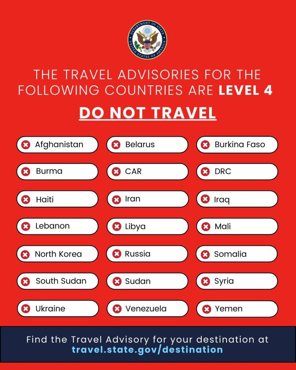 Госдеп США выпустил предупреждение о запрете посещения стран с наивысшим уровнем угрозы