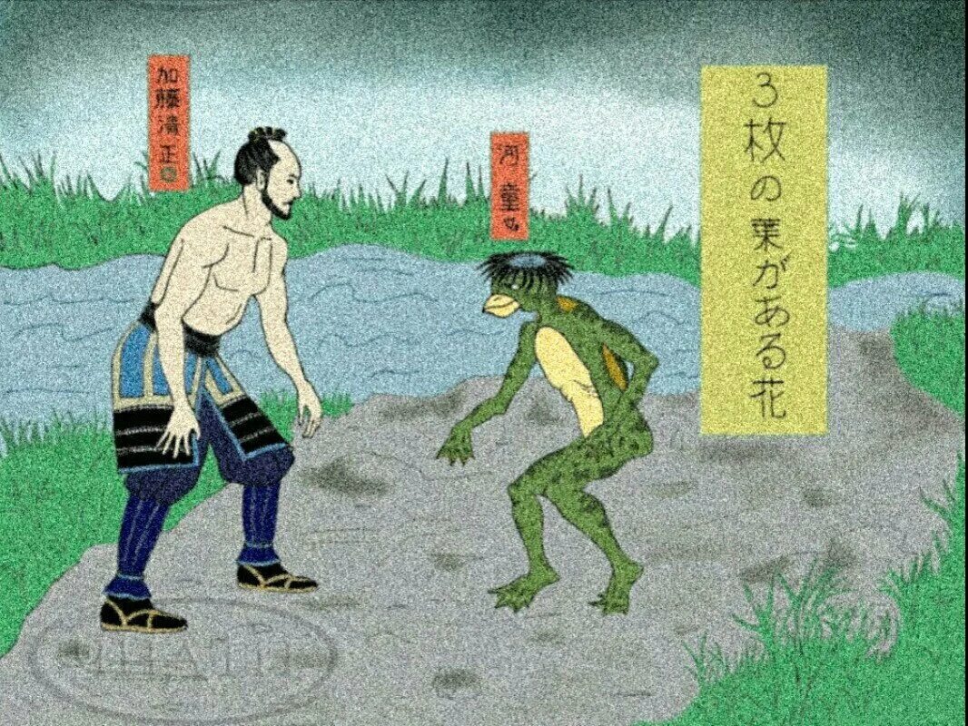 В таинственном мире японской мифологии особое место занимают каппы – загадочные существа, обитающие в водоемах и прудах. Эти необычные создания, по преданиям, обладают весьма специфической внешностью: голова напоминает черепашью, на макушке имеется углубление, наполненное водой – источник их магической силы. Японцы описывают капп как существ ростом около метра, с перепонками между пальцами и зеленым оттенком кожи. Интересно, что в разных регионах страны представления о каппах различаются: где-то их изображают с птичьим клювом, а где-то с рыбьим хвостом. По легенде, каппы славятся своим упрямством и любовью к розыгрышам. Они могут как помогать людям, так и причинять им вред. Особенно известны их “шутки” с купающимися людьми – каппы якобы могут затаскивать их в воду. Однако, если проявить хитрость и поклониться существу, оно, следуя правилам вежливости, поклонится в ответ и потеряет свою магическую силу, выплеснув воду из углубления на голове. В современной Японии каппы стали частью