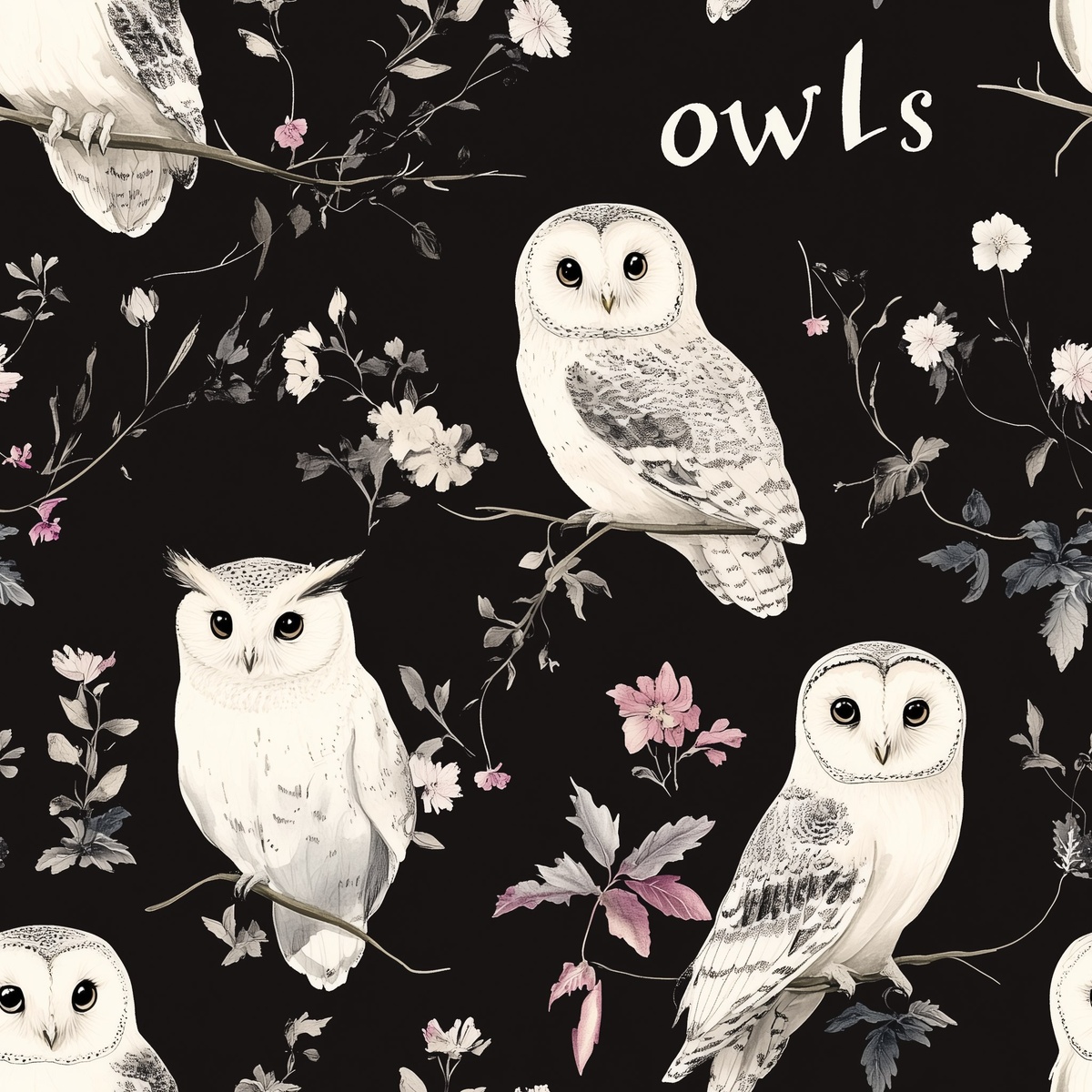 Создано на основе запроса: fiber optic floral owls, handwriting "owls", monochromatic, darkkhaki background, HDR, deep shadows