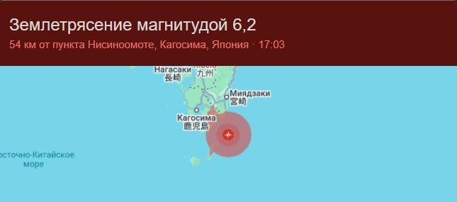 ⚡У побережья Японии произошло землетрясение магнитудой 6,2, сообщают мониторинговые сайты