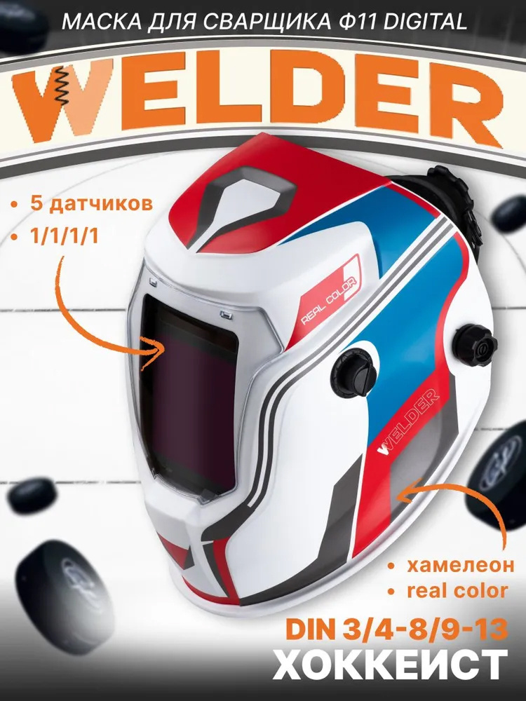 Как мы всегда говорим в каждой из нашей статей, сварочная маска – это самый главный атрибут сварщика во время работы. Защита самого главного человеческого органа – глаз. Помимо этого, она влияет на комфорт и качество работы. Наверняка, у каждого профессионала или любителя всегда возникал вопрос – какую сварочную маску выбрать, а главное – как и по каким параметрам ее оценивать? В настоящее время на рынке существует большое количество брендов, которые предлагают десятки, а то и сотни вариантов – от простых до высокотехнологичных сварочных масок с автоматическим затемнением. В данной статье мы разберемся, на что обратить внимание, чтобы она действительно «того стоила», а также разберем модель NEXT Ф11 DIGITAL с необычной деколью «Хоккеист» от WELDER. Что самое важное в любой сварочной маске, не говоря о качестве щитка и удобном оголовье? Конечно же, светофильтр. Приступим к обзору. Тип светофильтра. «Пассивные» маски. Они имеют затемненное стекло с фиксированной степенью затемнения (обыч