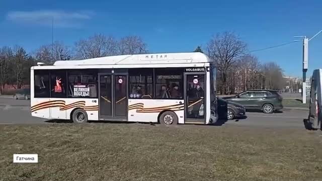 Первые автобусы, украшенные праздничной символикой, вышли на улицы Гатчины