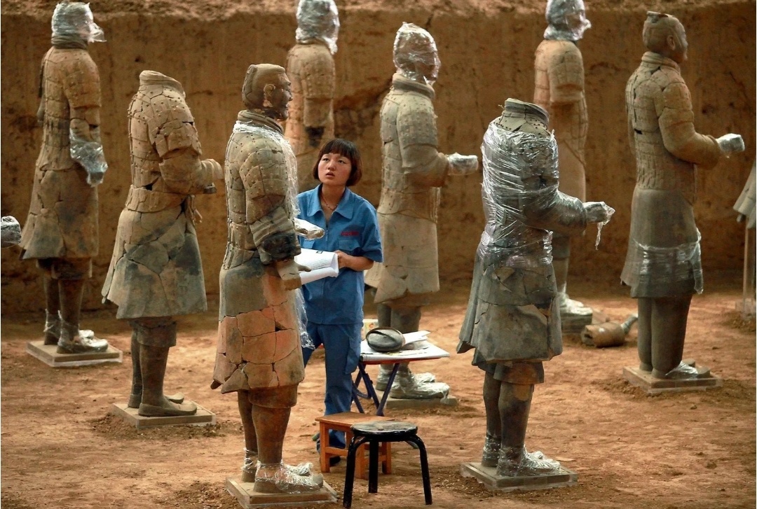 Фермеры, копавшие колодец в поле примерно в 20 милях к востоку от Сианя, в марте 1974 года наткнулись на яму, содержащую 6000 терракотовых статуй в натуральную величину. Вскоре это место было идентифицировано как место захоронения императора Цинь, и раскопки начались почти сразу. Теперь историки полагают, что около 700 000 рабочих работали над мавзолеем в течение почти трех десятилетий.