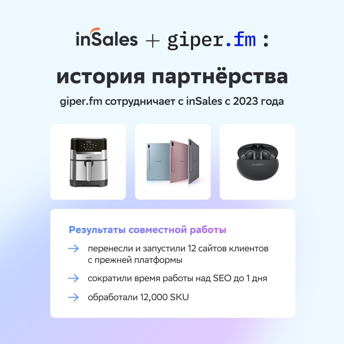 Кейс giper.fm: как переезд на inSales повлиял на бизнес оператора мировых брендов Мы выпустили кейс с giper.fm — это не просто оператор D2C-магазинов, а настоящий титан электронной коммерции с 21-летним опытом на рынке. Компания стала официальным партнёром Samsung, Tefal, Karcher, Hansa и других международных брендов. Как giper.fm перевели 12 сайтов на inSales без потерь? Рассказываем в карточках и отвечаем на вопросы: ❓ Почему giper.fm отказались от прежней CMS? ❓ Как inSales помогает экономить время и деньги? ❓ SEO-настройка за 1 день — это реально? А на сайте полная версия кейса с техническими фишками: ✅ Настройка Яндекс.Метрики увеличила точность данных на 20%. ✅ Интеграция лендинга с Tilda улучшила конверсию. ✅ Перелинковка снизила отказы на 15% и повысила индексацию на 30%. А если пропустили подкаст с giper.fm — скорее послушайте выпуск про то, как управлять интернет-магазинами крупнейших брендов! 👀 [Читать кейс] 🎧 [Слушать подкаст] #insales_герои