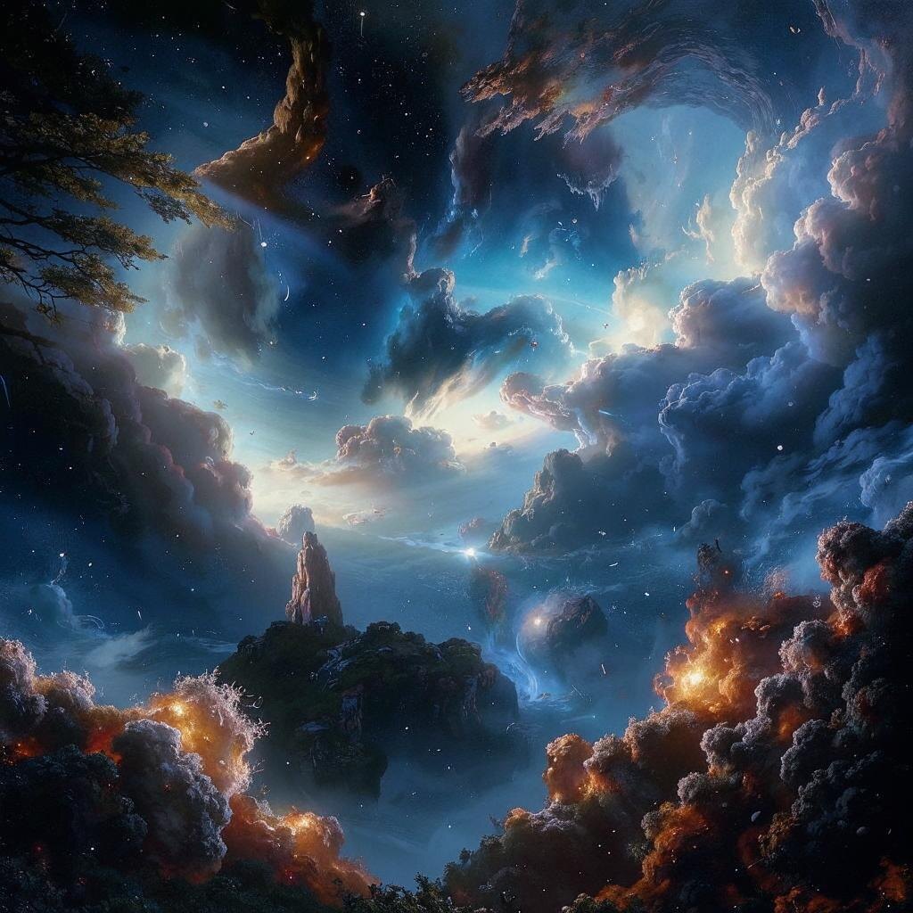 Что такое космическая пустота? Космическое пространство между галактиками называют межгалактическим пространством. Оно заполнено разреженным газом, состоящим преимущественно из водорода и гелия, а также небольшими количествами пыли и тяжелых элементов. Однако плотность этой среды настолько низка, что в среднем один атом приходится на кубический метр пространства. Для сравнения, в воздухе Земли на тот же объем приходится около $10^{25}$ молекул! Вечная тьма Тьма космоса обусловлена отсутствием источников света. Звезды, планеты и другие объекты излучают свет, который распространяется в пространстве. Но когда этот свет проходит через огромные расстояния между галактиками, он рассеивается, поглощается пылью или теряет энергию из-за расширения Вселенной. Это создает иллюзию полной темноты. Однако важно понимать, что даже в такой темноте существуют невидимые формы излучения, такие как микроволновое фоновое излучение — остаточный след Большого взрыва, который можно наблюдать как слабое св