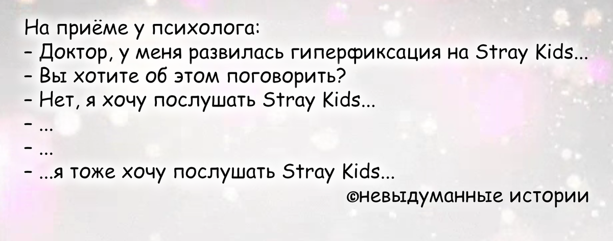 Шутить про какие-либо психологические отклонения - это, конечно, неправильно, но когда речь идёт про любимых Stray Kids, можно немного отклониться от норм морали. Тем более, когда сами Скизы ежедневно делают всё возможное, чтобы доводить своих фанатов до сумасшествия! Поймав себя на мысли, что вот уже на протяжении почти двух лет работаю, гуляю, занимаюсь бытовыми делами только под музыку Stray Kids, я задумалась над смыслом слова "гиперфиксация". Существует же множество групп, участники которых заслуживают не меньшего внимания и восхищения. Так почему только Skz? Почему, как написала Стэй у нас в комментариях, они входят в жизнь с ноги, без шансов на выдворение? Почему уже так много часов жизни потрачено на просмотр околоскизового контента, а новые его дозы проглатываются незамедлительно и с наслаждением? Гиперфиксация - это психологическое состояние зацикленности на одной конкретной теме/предмете/человеке или мысли. Рождаясь из обычной заинтересованности в чём-то, она может перераст