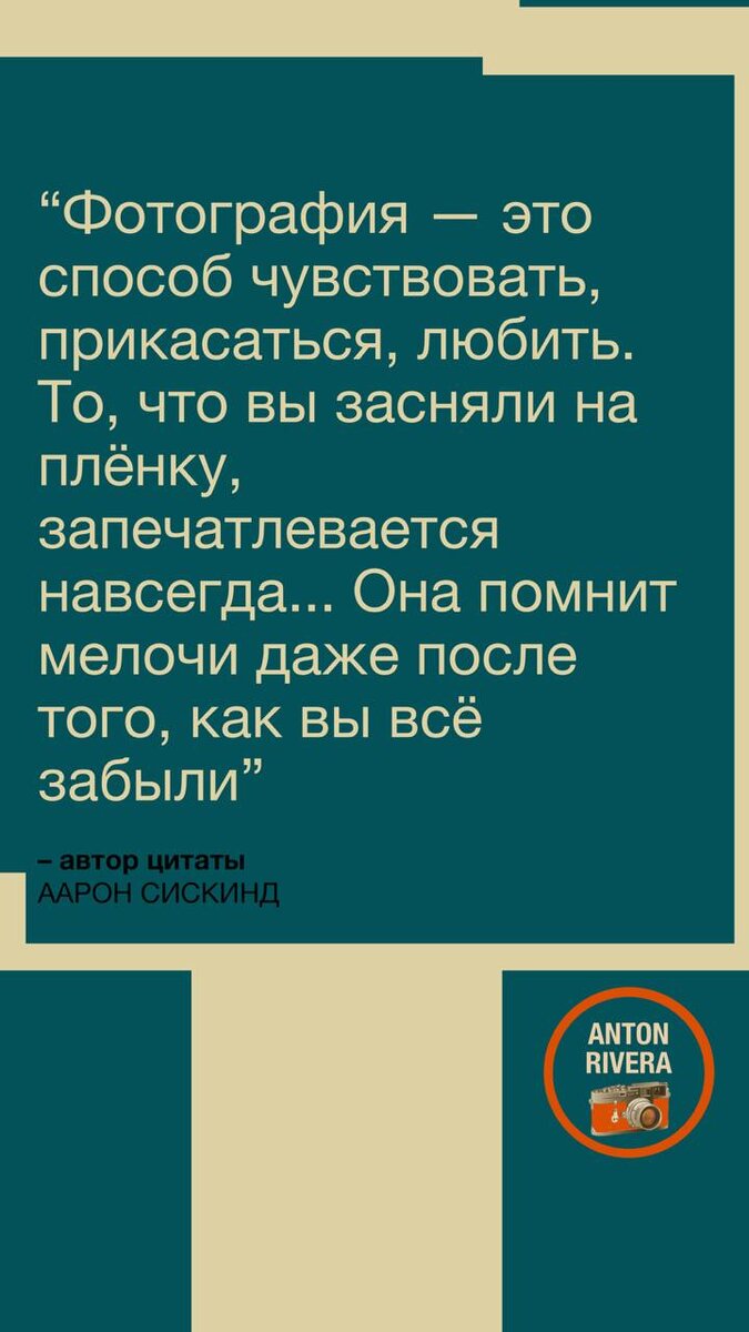 Прерву долгое молчание, воцарившееся на этом канале, цитатой известного фотографа — и всё для того, чтобы люди, нажимающие на кнопку своего