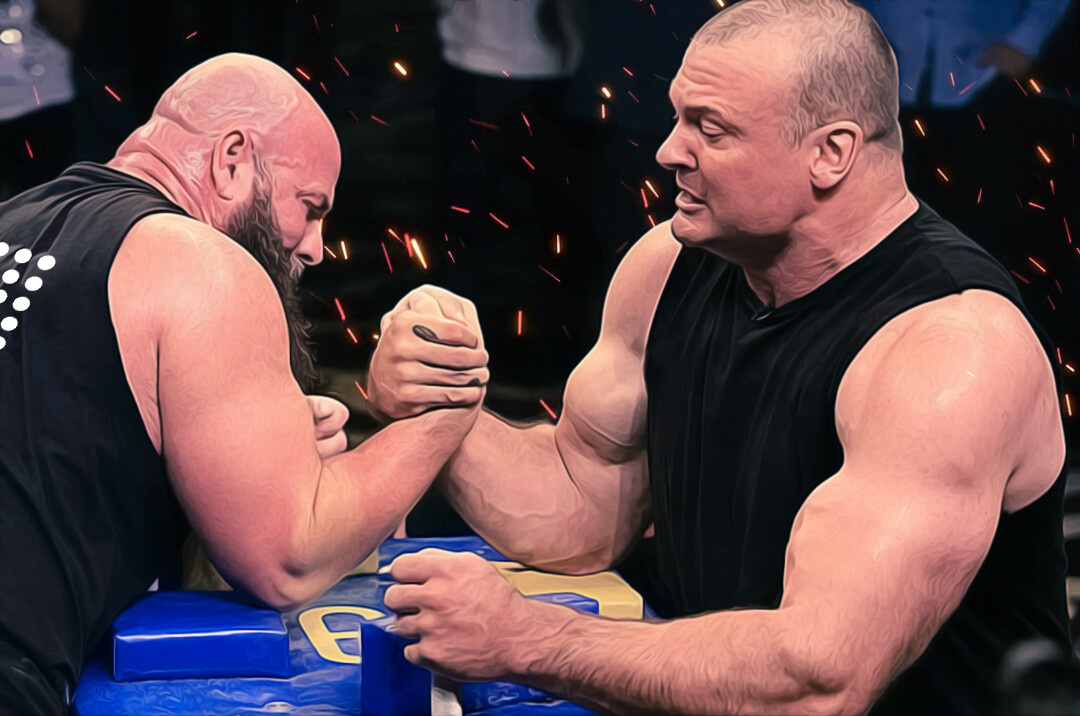 Армрестлинг или Армспорт[1] (от англ. Arm sport, arm wrestling, arm — рука; рус. Рукоборие, а также руколо́м/руколо́мка[2]) — вид борьбы на руках между двумя участниками (вид Спортивных единоборств). Во время матча одноимённые руки соревнующихся ставятся на твёрдую, ровную поверхность (как правило, стол), и ладони сцепляются в замок. Задачей соревнующегося рукоборца является прижатие руки противника к поверхности. В словаре Даля описан под названием руколом(ка) как «ручное ристанье, опыт силы: подняв руки и запустив пальцы в пальцы, противники осиливают друг друга»[2]. На участников поединка накладывается ряд временных, технических и тактических ограничений (см. подробнее: Правила). Армрестлинг Армрестлинг, борьба на руках, турнир по армрестлингу, Профессиональная Лига Армрестлинга Армрестлинг, борьба на руках, турнир по армрестлингу, Профессиональная Лига Армрестлинга Название Всемирная федерация армрестлинга[вд] Логотип Викисклада Медиафайлы на Викискладе Не являясь олимпийским видо