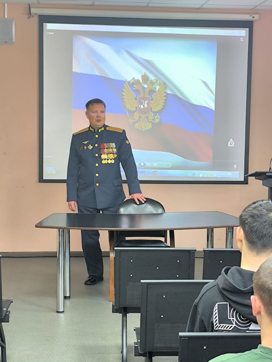 В продолжение бесед о служении Отечеству к нам в гости приходил потомственный офицер, побывавший не в одной горячей точке, не по наслышке знающий, что значит служить своей Родине - А. Гучко. Он рассказал о себе, о своей службе. Было задано много вопросов на разные темы. В живой беседе обо всем, что интересовало и студентов, и преподавателей, время пролетело незаметно.