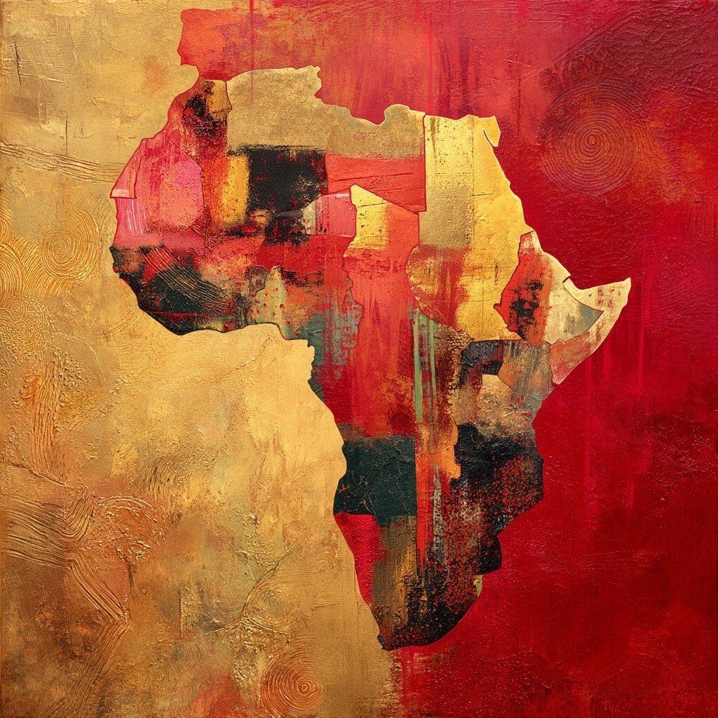 Создано на основе запроса: abstract African continent in gold and red