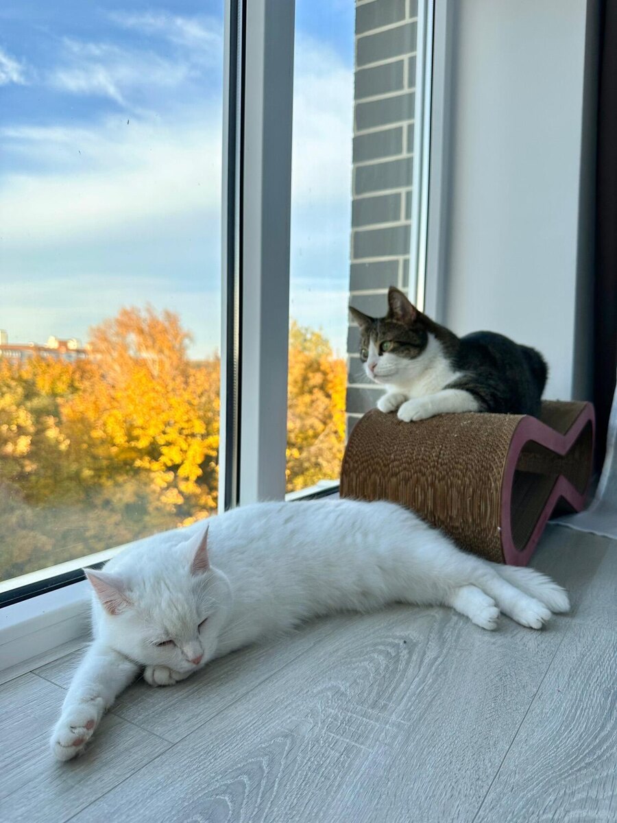 Для сравнения опишу вам как себя ведет кошка с крепкой нервной системой. Аляска, как и Мята, была подобрана с улицы в том же возрасте, так что исходные данные у них одинаковые. Аляска не боится ничего от слова совсем! Пылесос можно подводить прямо к её лапкам, она даже не шелохнется. Спит она так крепко, что не слышит когда я прихожу домой или зову покушать. Мята, даже если спала, бежит меня встречать, а Аляска видит десятый сон. Если взять вкусняшку и поднести к носу спящей Аляски, она не проснётся. Любые громкие звуки, шорохи и движения ее не пугают.