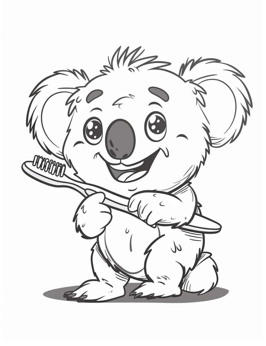 Создано на основе запроса: A cute koala brushing its teeth with a big toothbrush. Thick outlines, simple shapes only, no background.