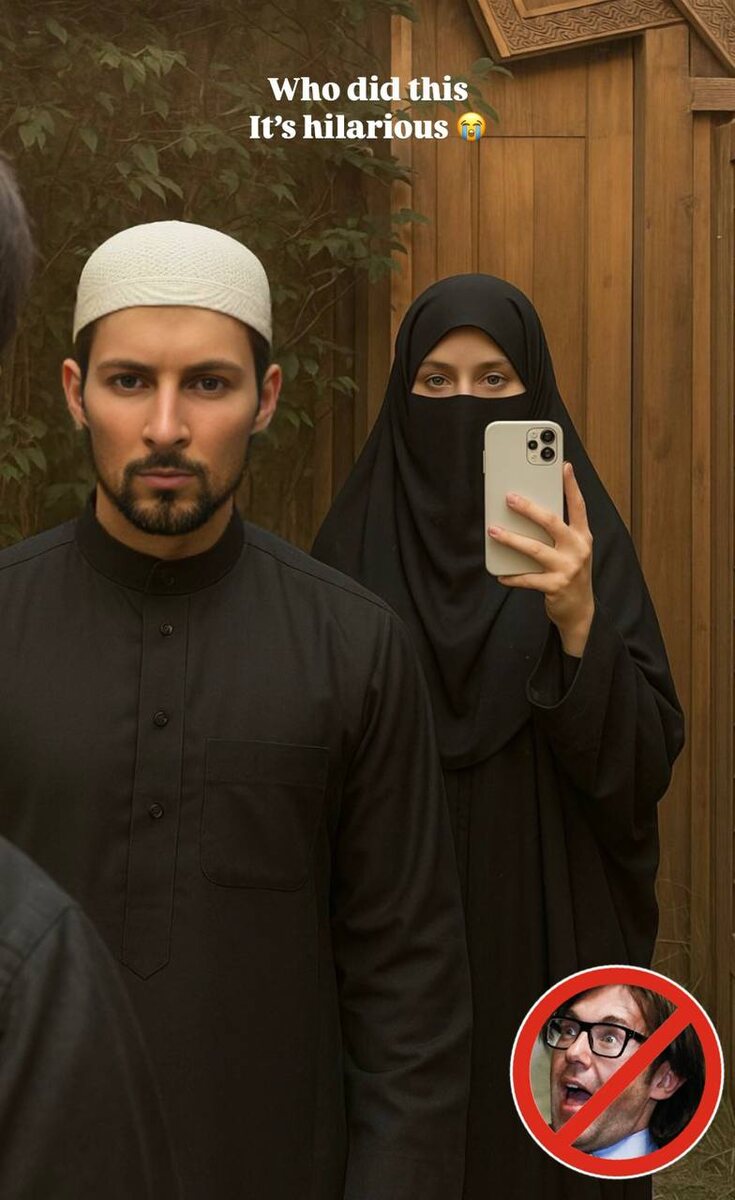 Павел Дуров спрятал свои нарисованные кубики пресса. Даму тоже приодели