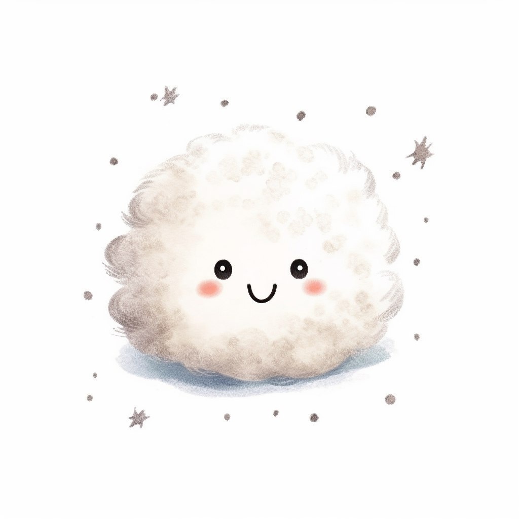 Создано на основе запроса: A cute and simple children's illustration of a snowball in a playful cartoon style, on a plain white background. The snowball is fluffy and round, with soft shading and a slightly textured surface to show it's made of snow. It has a gentle, whimsical appearance, possibly with a tiny smiling face to add charm, in the style of a Disney cartoon. The overall look is clean, bright, and friendly, perfect for a children's book or winter-themed educational material