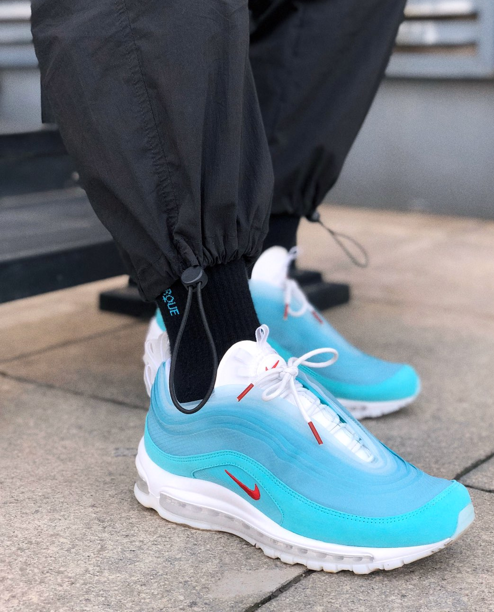 - Off-White x Air Max 97 «Menta» (2018): Вирджил Абло добавляет фирменные ремни и полупрозрачный верх.