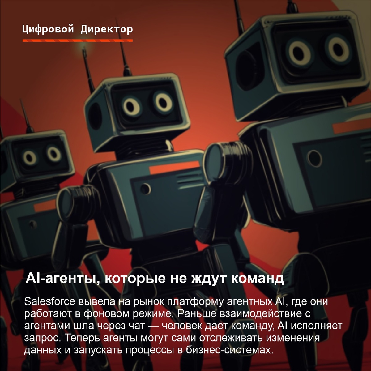 Salesforce вывела на рынок платформу агентных AI, где они работают в фоновом режиме без постоянного контроля человека. В предыдущих версиях платформы взаимодействие с агентами шла через чат — человек дает команду, AI исполняет запрос. Теперь агенты могут сами отслеживать изменения данных и запускать процессы в бизнес-системах.