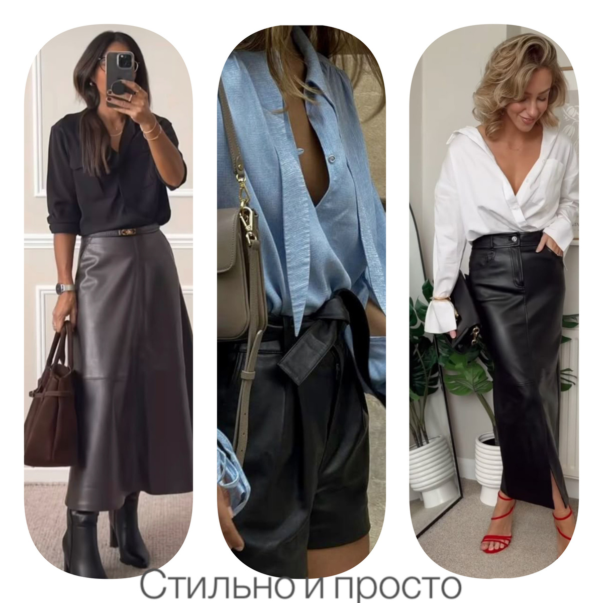 Лето 2025 обещает быть щедрым на теплую погоду, а мода отходит от вычурности и объемов: всё больше мы идем к умной простоте и качественным материалам. В тренде снова женственность и элегантность. Особенно это актуально для женщин 40+, которым важно выглядеть не только современно, но и статусно, уверенно, достойно. Подобрала для вас 5 актуальных сочетаний, которые уже сейчас называют «роскошью без кричащего лейбла». А чтобы не быть голословной — добавила мнение русских стилистов. 1. Лен + кожа Такое сочетание выглядит расслабленно, но при этом очень дорого за счет разных фактур и натуральных материалов. Образ можно использовать и для весны/осени: например кожаная юбка макси будет достаточно теплой, особенно в сочетании с льняной рубашкой. «Комбинация фактур — это новая роскошь. Натуральный лен и мягкая кожа дают интересный визуальный и тактильный контраст. Главное — выбирать спокойные цвета: песочный, сливочный, какао» говорит стилист Ольга Горячева. Совет: Добавьте акцентные серьги